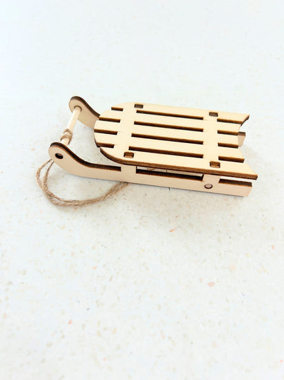 Der Schlitten ist aus Holz gefertigt, hat die Maße L10cm B5,5cm H2,5cm, die Seife ist mit Papier-Bastband und einer getrockneten Orangenschale befestigt.